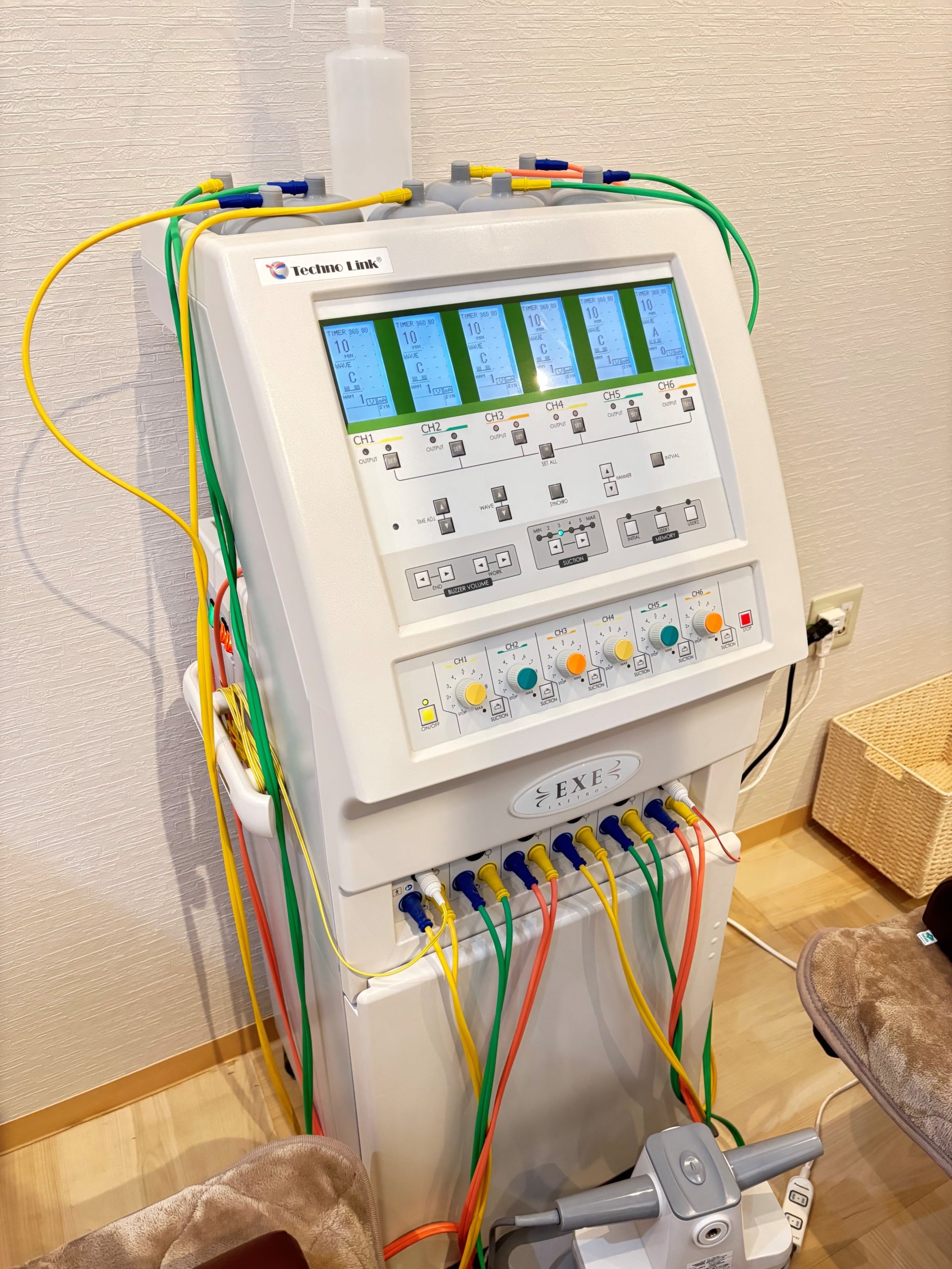 エグゼトロン(EXETRON)は、筋肉に電気刺激を加え、筋肉の収縮と弛緩を繰り返すことで、血行を促進し、痛みの緩和や筋肉の疲労回復、筋力強化などの効果が期待できる低周、干渉波治療器です。