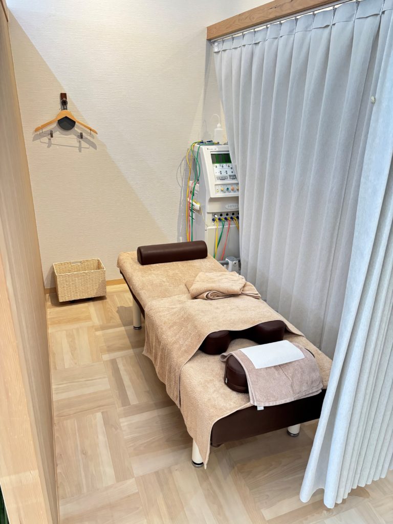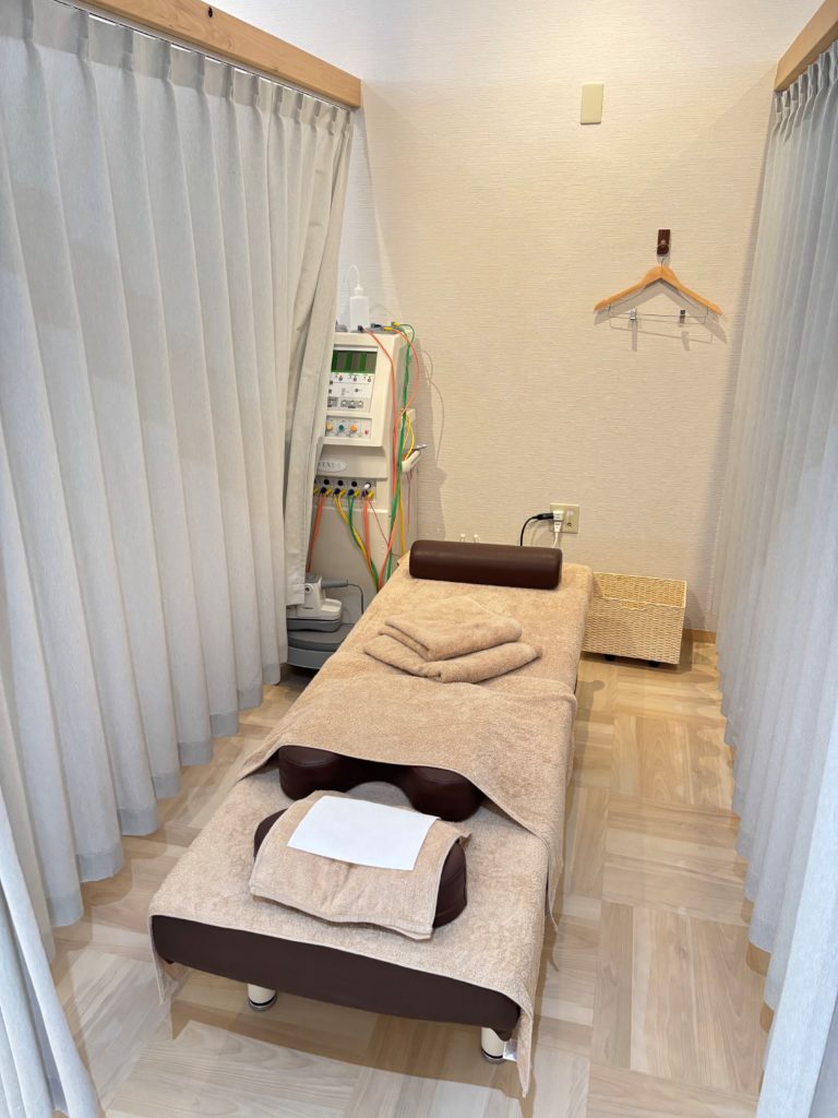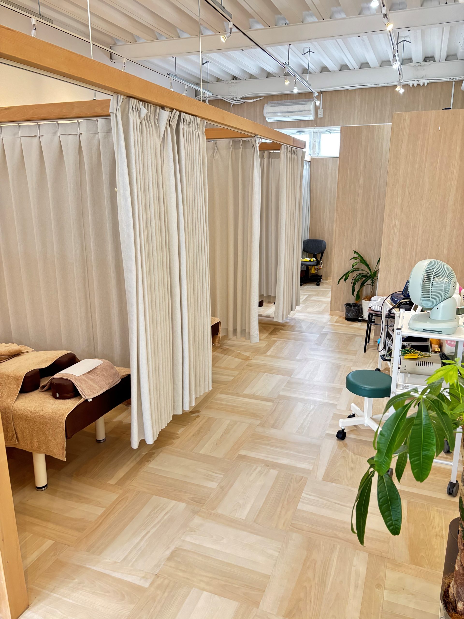 それぞれカーテンで仕切られてる為個室空間で施術受けられます。