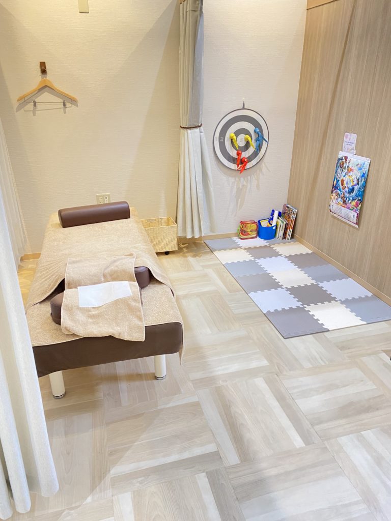 お子様連れでも安心してご利用いただけるように同じスペースで施術を受けれます。